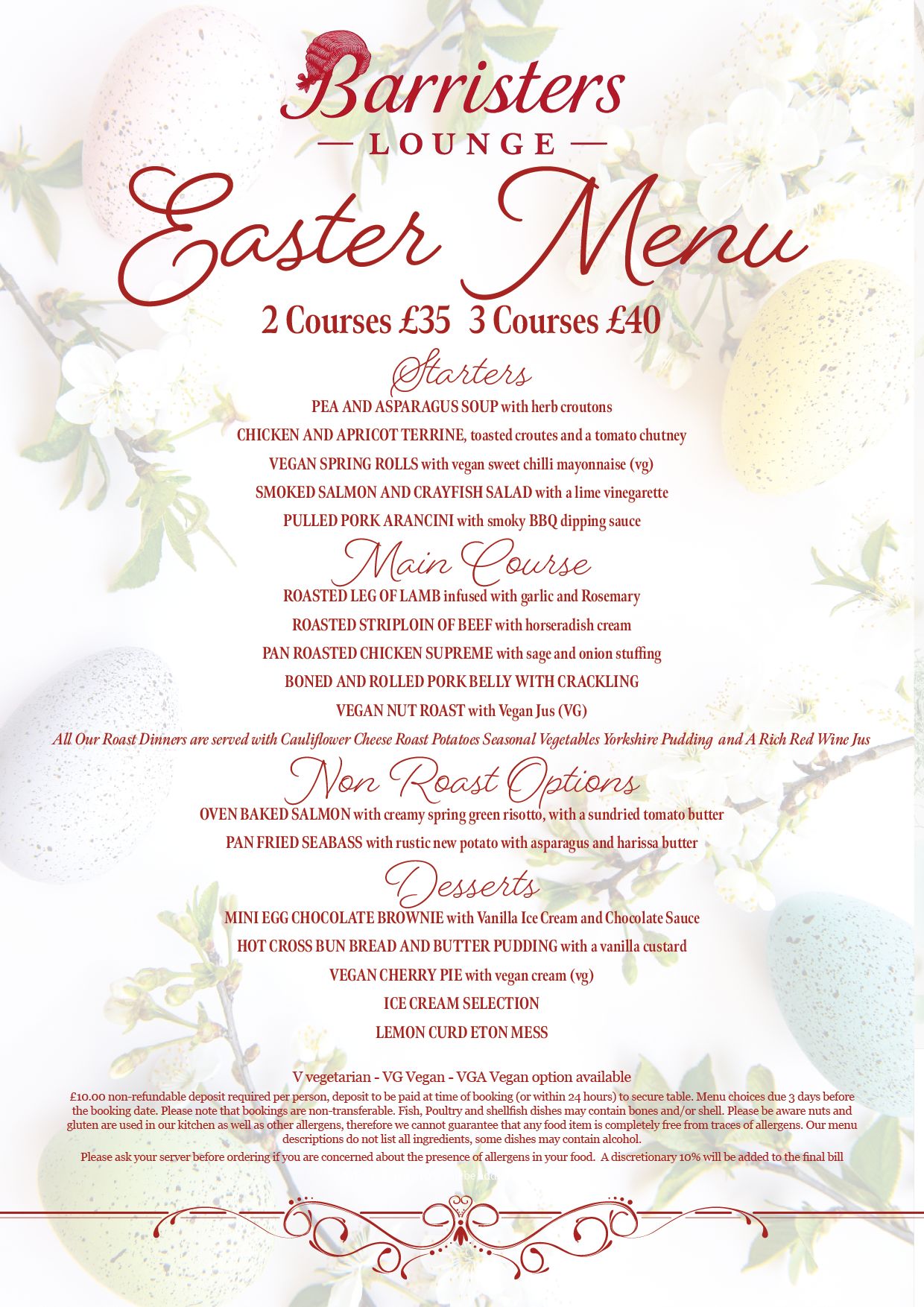 Items marked with a (V) are vegetarian, whilst items marked with a (Vg) indicates a vegan option is available upon request. A discretionary 10% service charge will be added to your bill. Fish, Poultry and shellfish dishes may contain bones and/or shell. Please be aware nuts and gluten are used in our kitchen as well as other allergens., therefore we cannot guarantee that any food item is completely free from traces of allergens Some dishes may contain alcohol.